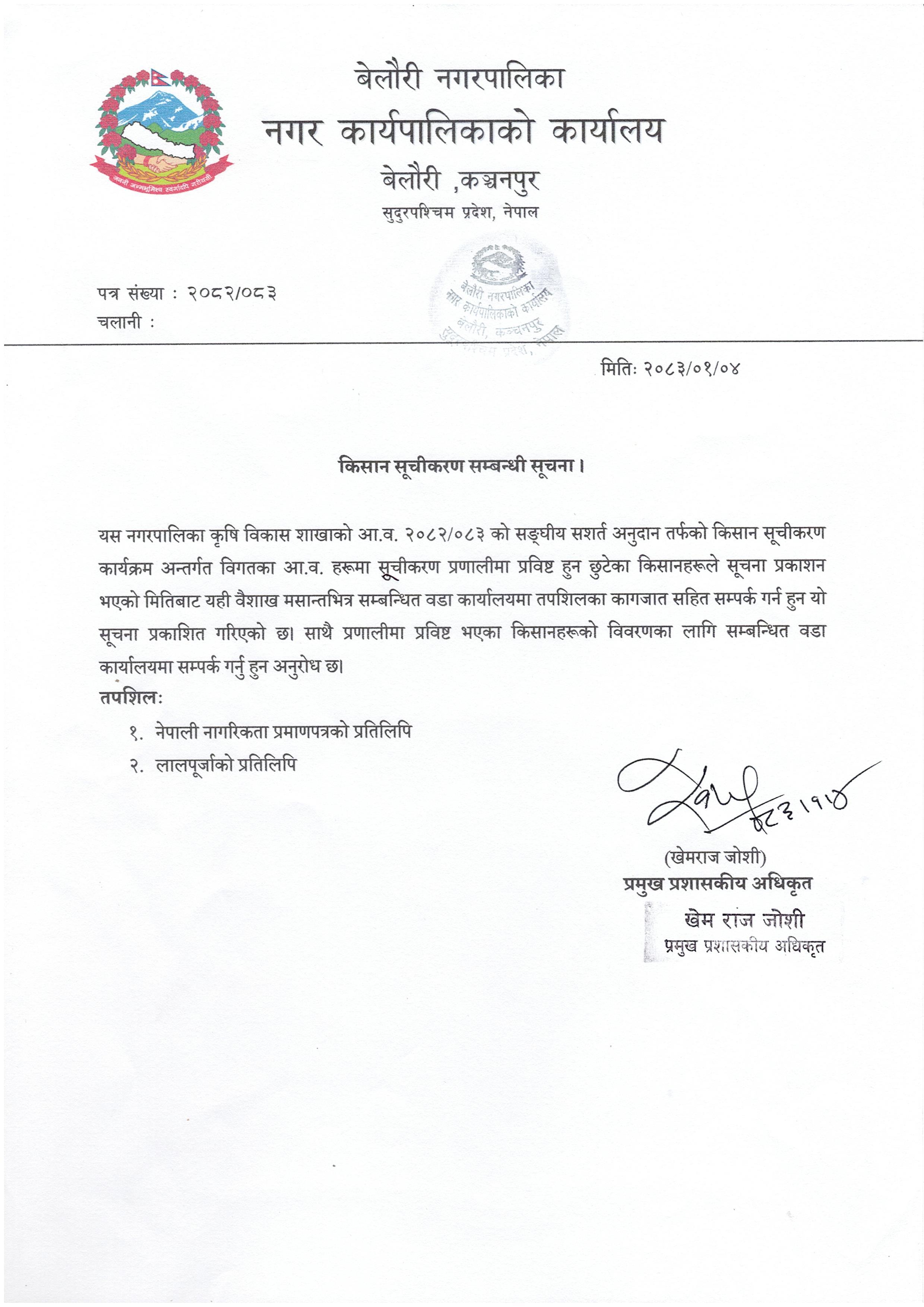 » किसान सूचीकरण सम्बन्धी सूचना ।
