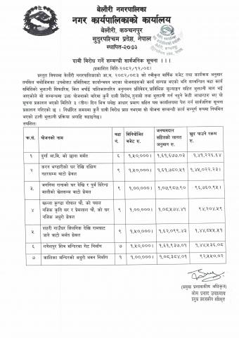 दररेट पेश गर्ने सम्बन्धी ७ दिने सूचना ।।।