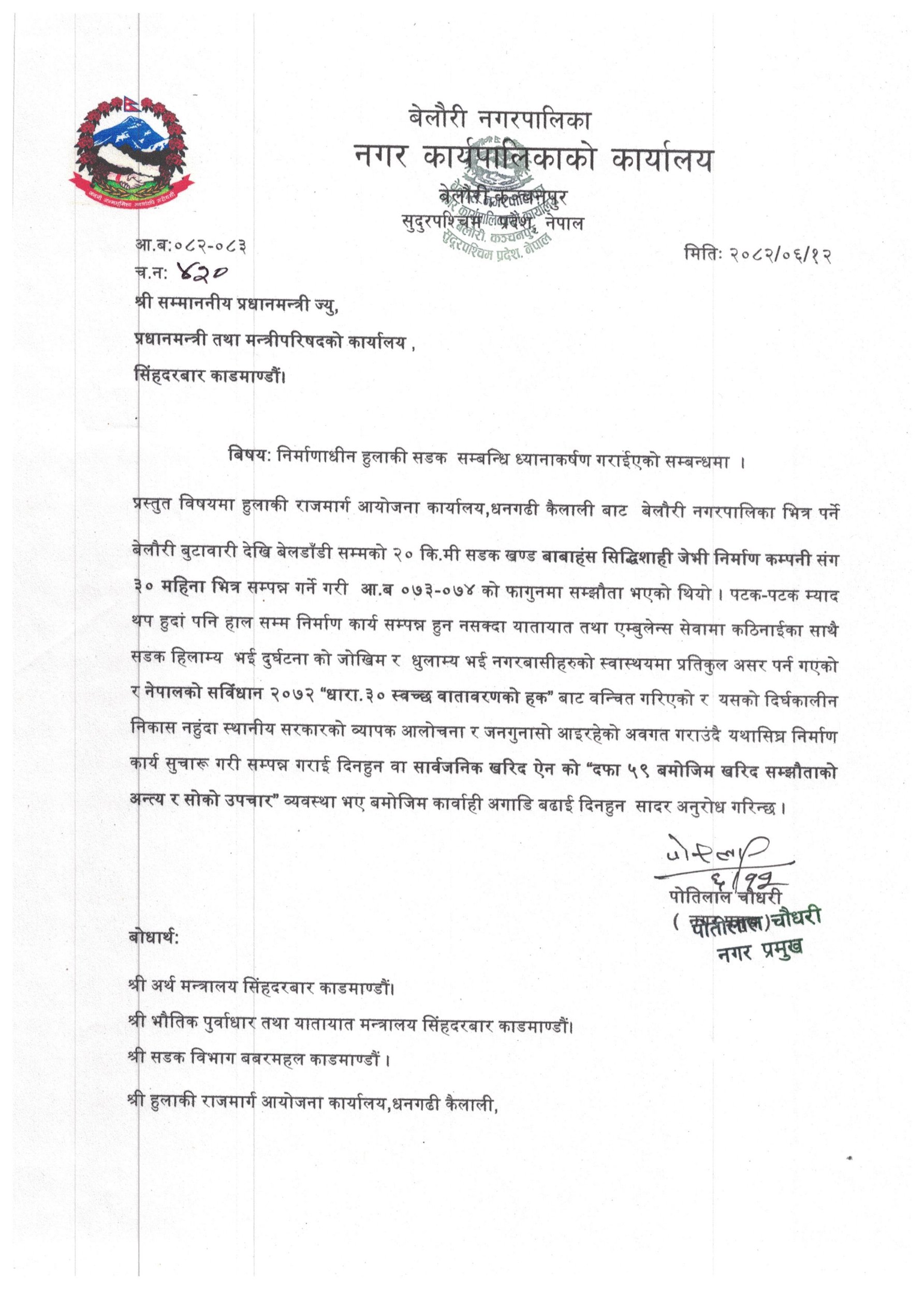 » निर्माणाधिन हुलाकी सडक सम्बन्धी ध्यानाकर्षण गराईएको सम्बन्धमा ।