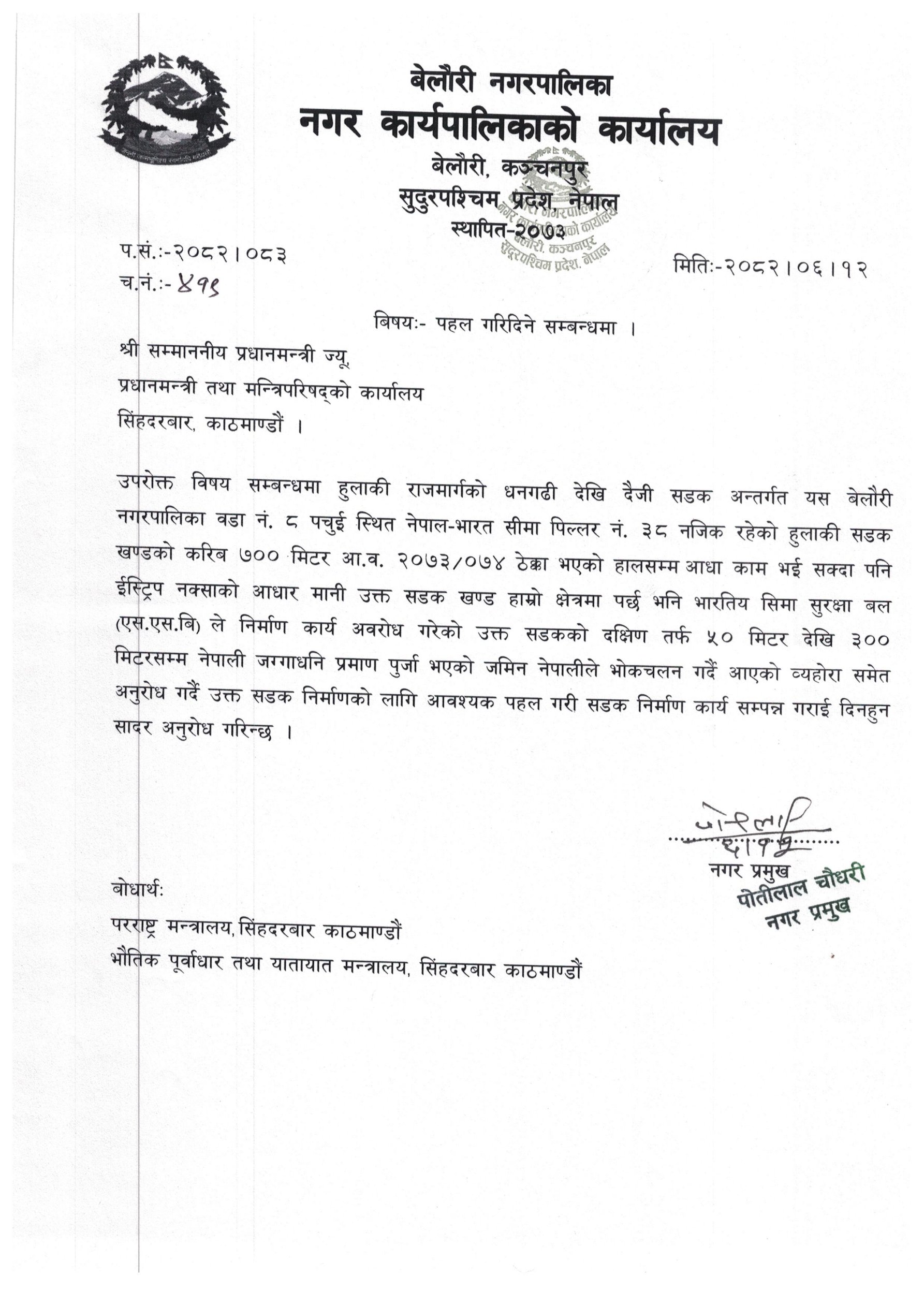 पहल गरिदिने सम्बन्धमा ।