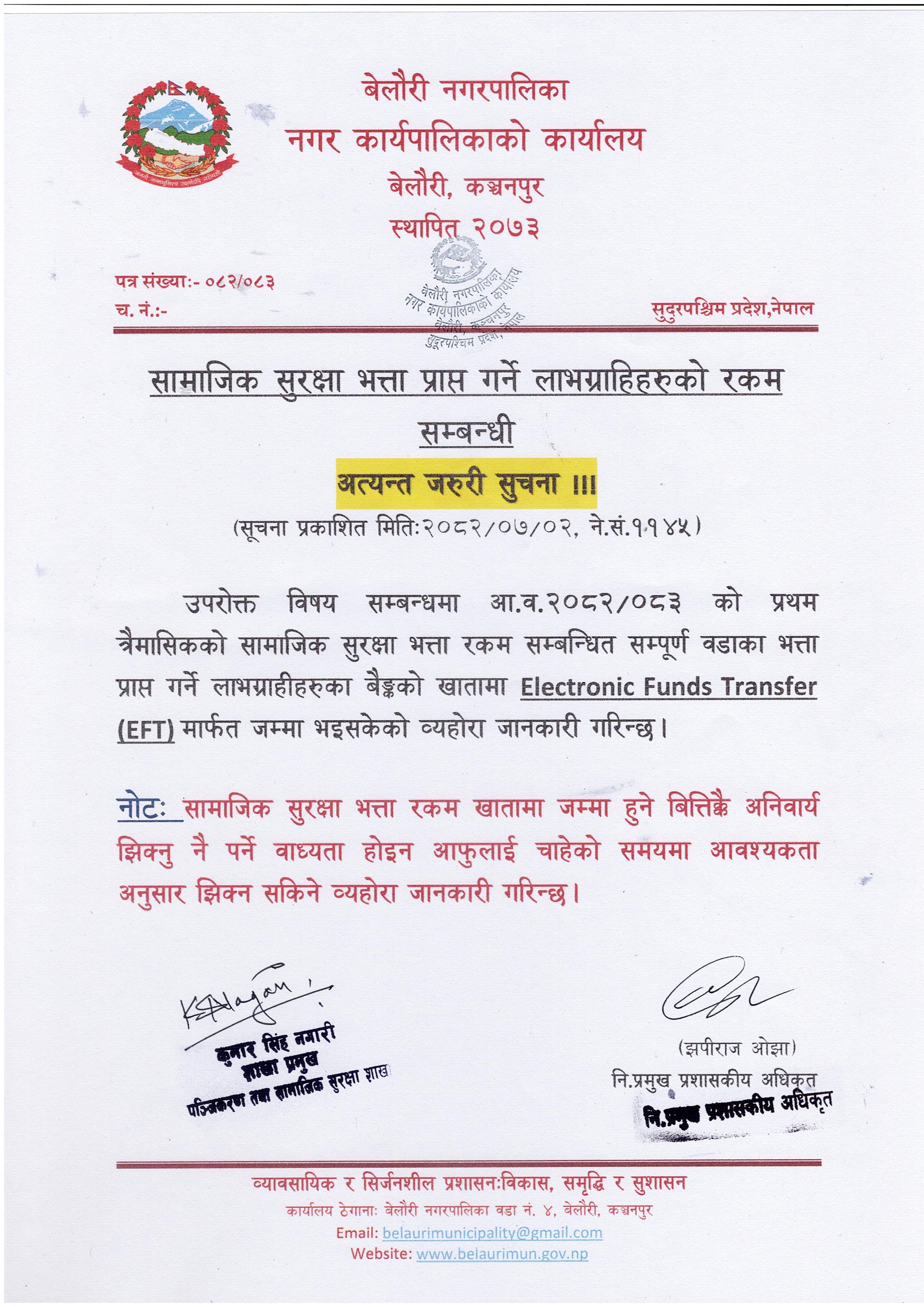 » सामाजिक सुरक्षा भत्ता रकम सम्बन्धि सूचना ।