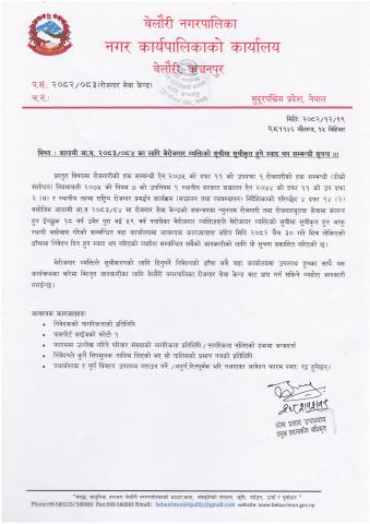 » आगामी आ.व. २०८३-०८४ का लागि बेरोजगार व्यक्तिको सूचीमा सूचीकृत हुने म्याद थप सम्बन्धी सूचना