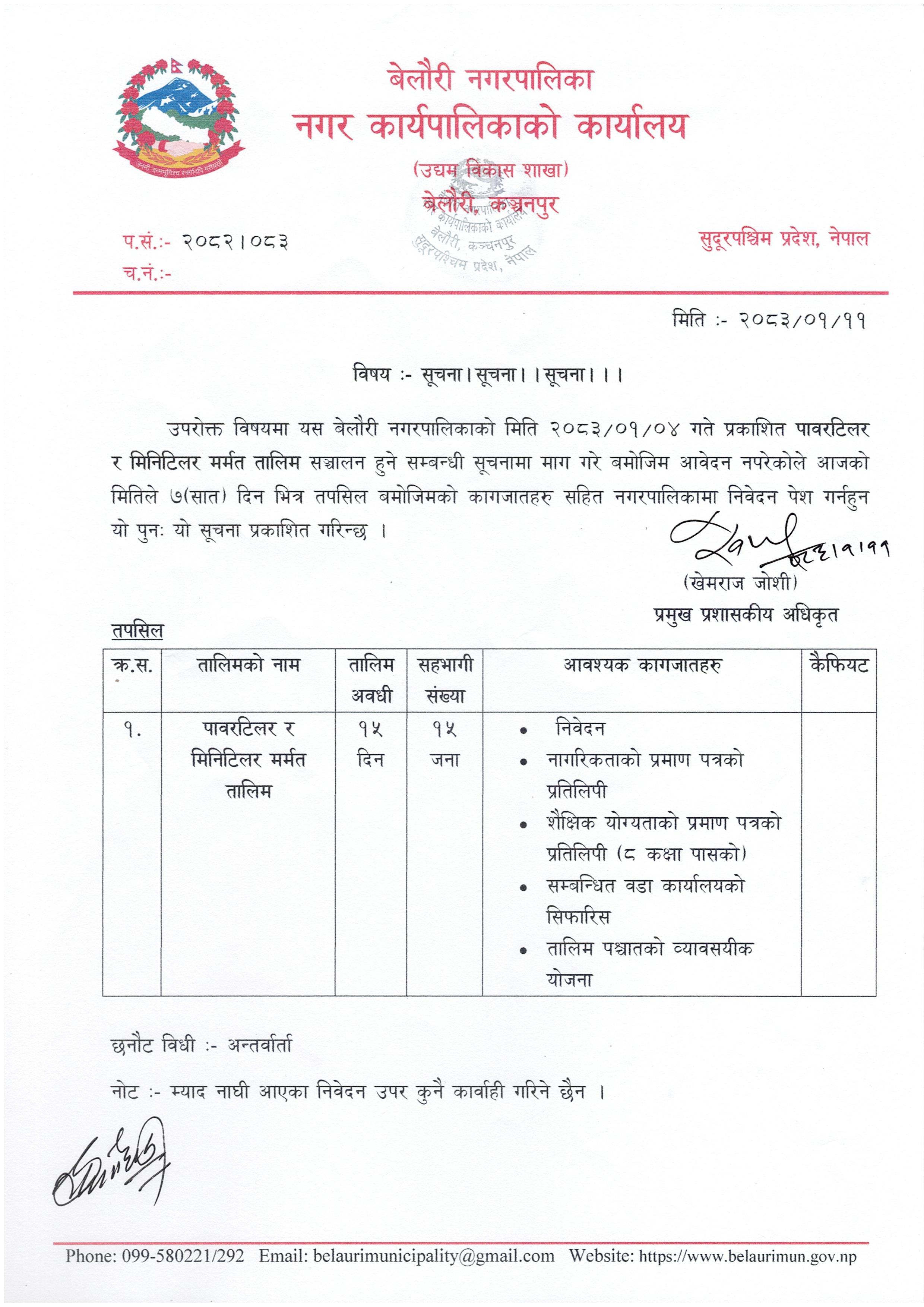 पावरटिलर र मिनिटिलर मर्मत तालिम सम्बन्धी सूचना ।
