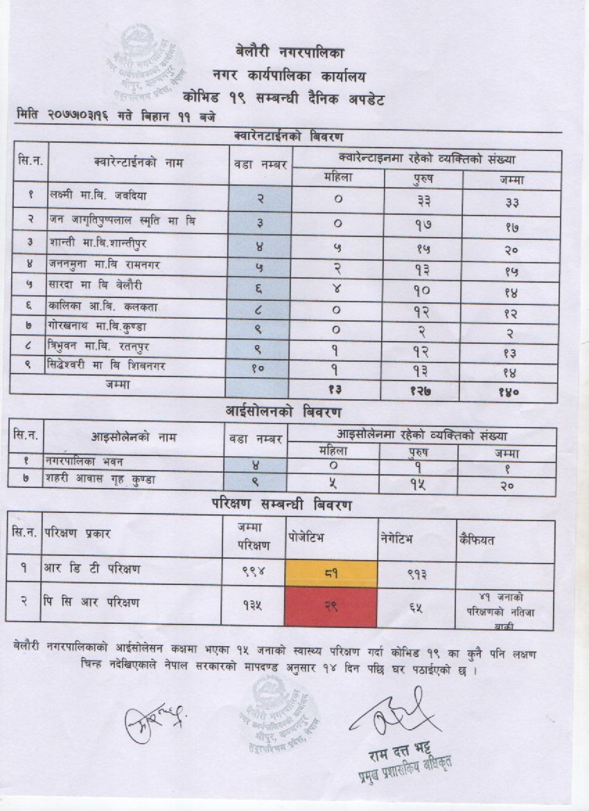 कोरोना भाईरस (कोभिड - १९) अपडेट २०७७।०३।१६