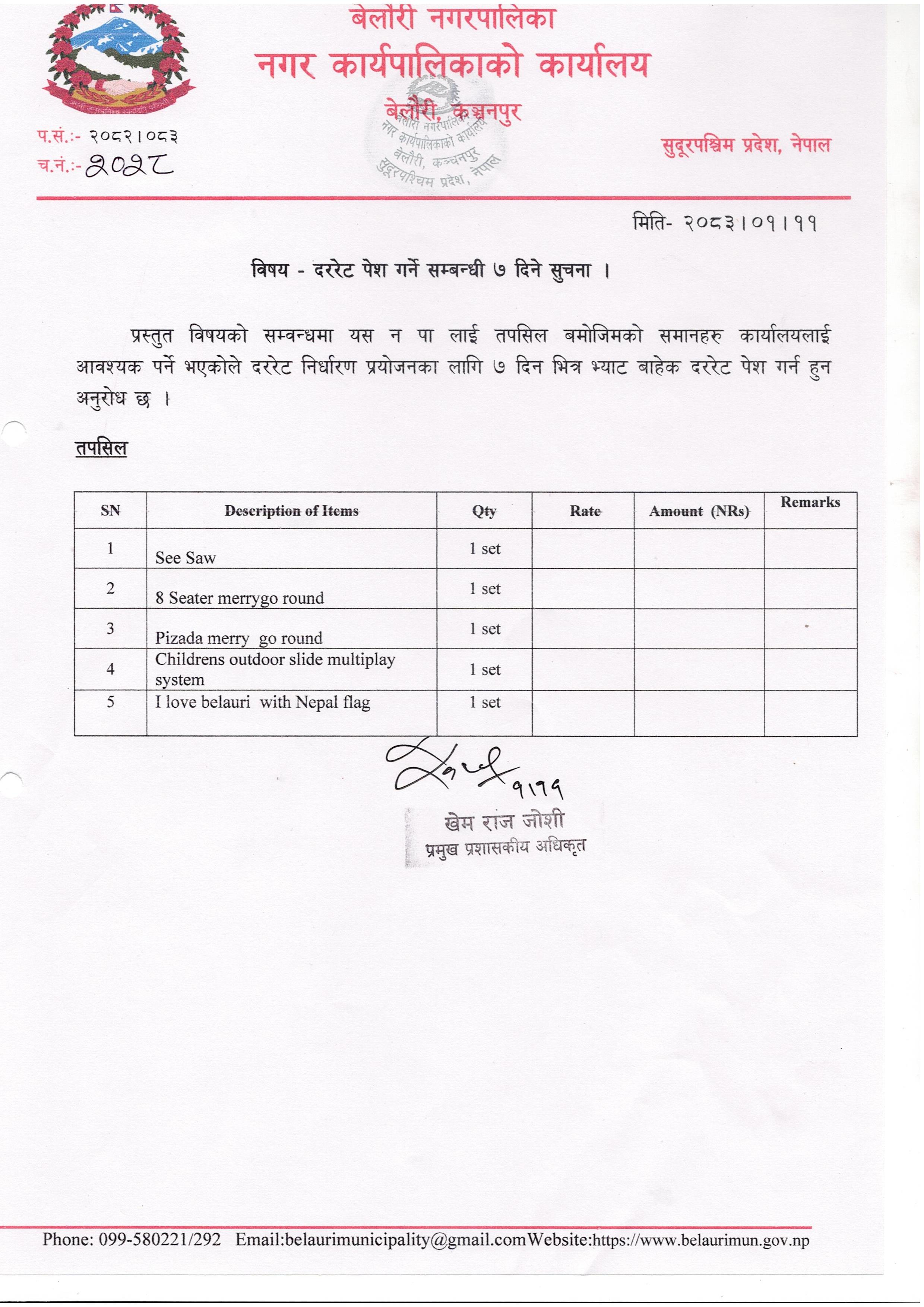 » दररेट पेश गर्ने सम्बन्धमा ७ सात दिने सूचना ।