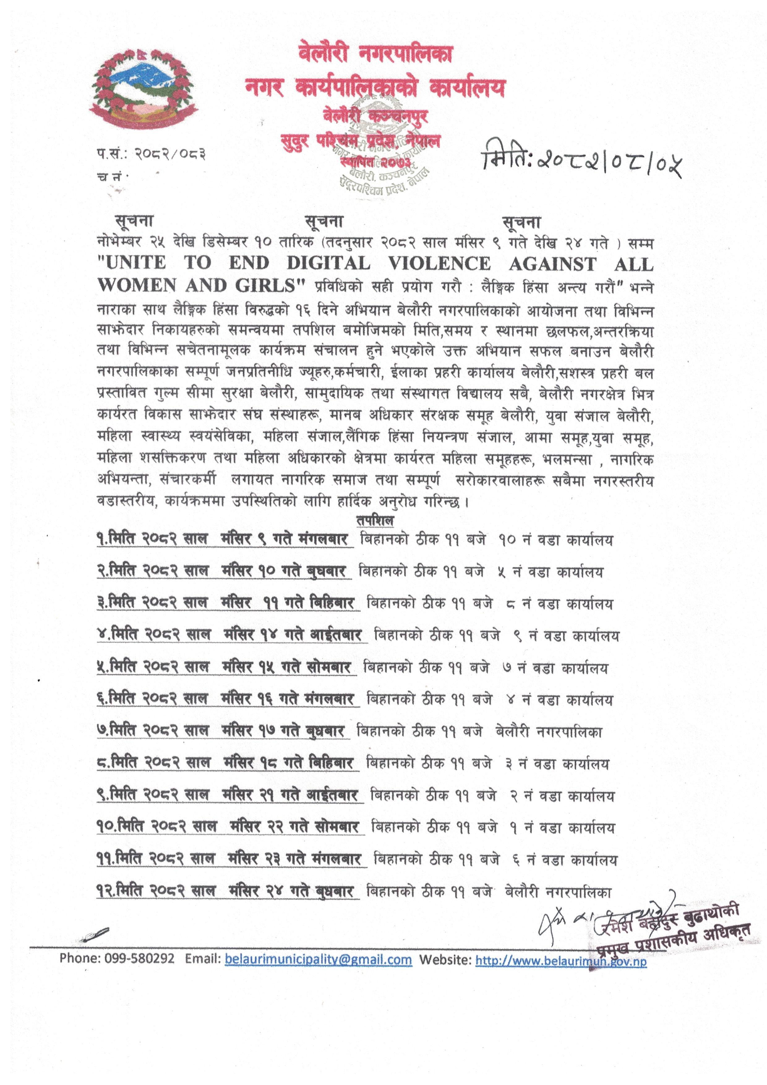 » लैङ्गिक हिंसा विरुद्धको १६ दिने अभियान सम्बन्धी सूचना ।