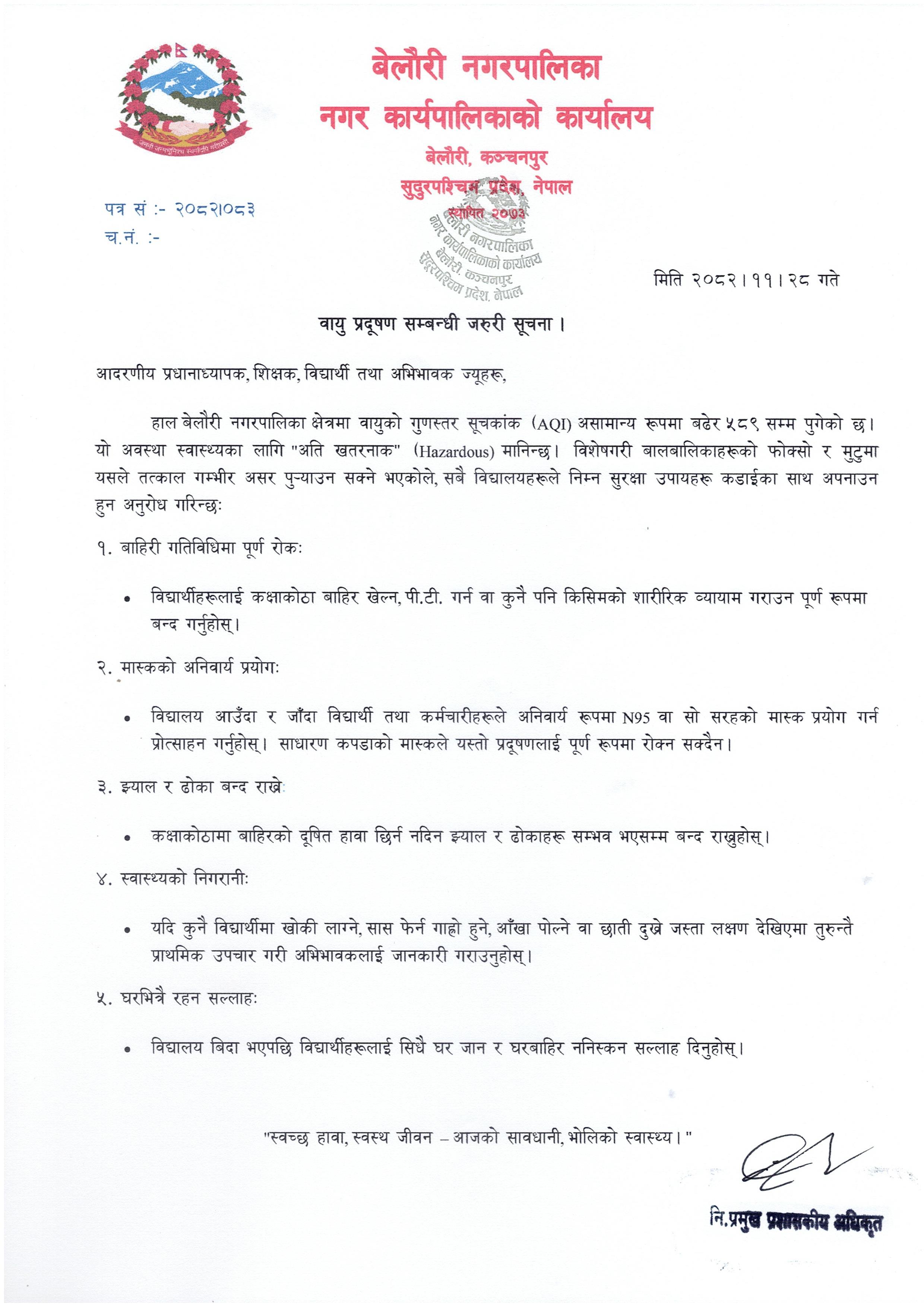 वायु प्रदुषण सम्बन्धी जरुरी सूचना ।